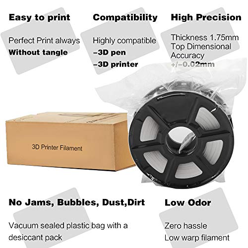 ②【Tolleranza Dimensionale Stabile】 Filamento ABS 3D da 1.75 mm, precisione dimensionale +/- 0.02 mm. Il filamento ABS SUNLU ha un'ampia compatibilità con le stampanti 3D, grazie alla tolleranza di alta precisione e alla perfetta rotondità dell'intera bobina da 1 kg.