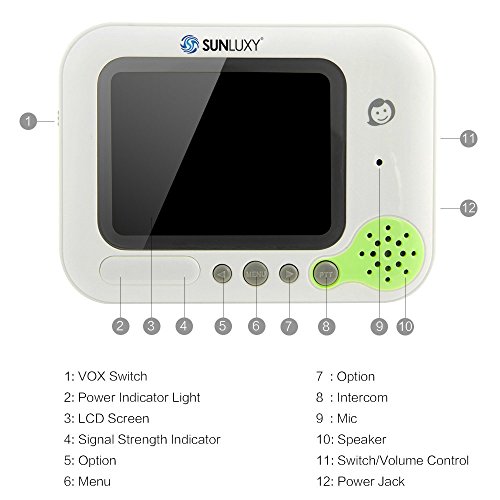 Sunluxy? Wireless Baby Monitor Babyphone digitale Display a colori Control + Video 2 vie con funzione interfono Sensore di temperatura