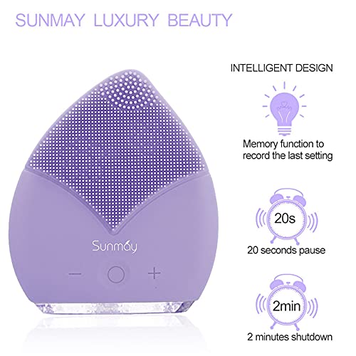 SUNMAY Leaf Spazzola per la Pulizia del Viso in Silicone con Funzione di Memoria e Timer, Spazzola Pulizia Viso Vibrazione Sonica Impermeabile per una Pulizia Profonda, Esfoliazione Delicata (Viola1)