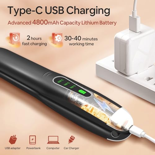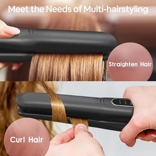 SUNMAY Voga Piastra per Capelli e Arricciacapelli Senza fili 2 in 1, Ferro da Stiro Portatile Ricaricabile USB, Mini Piastra da Viaggio Wireless con Temperature 3 Livelli, Batteria da 4800 mA - Nero
