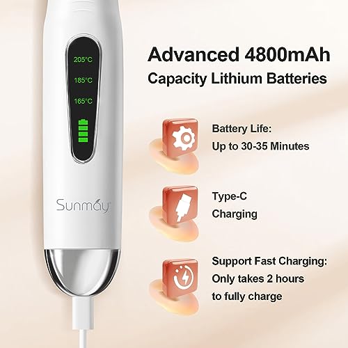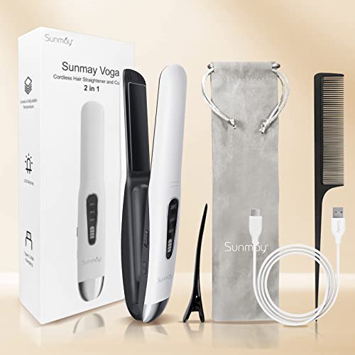 SUNMAY Voga Piastra per Capellie Bigodino Cordless 2 in 1, Ferro da Stiro in Ceramica Ricaricabile USB, Piastra da Viaggio Temperatura Regolabile 3 Livelli, Batteria da 4800 mA - Versione Aggiornata