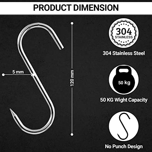 Sunmondo 10 ganci a S per macellaio, 12 cm, in acciaio inox, con punta su un lato