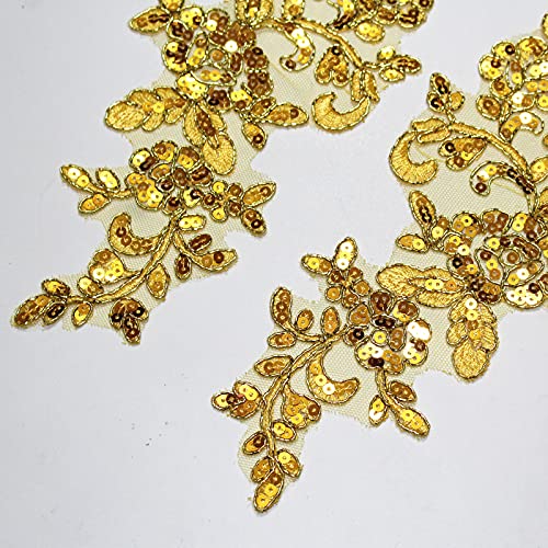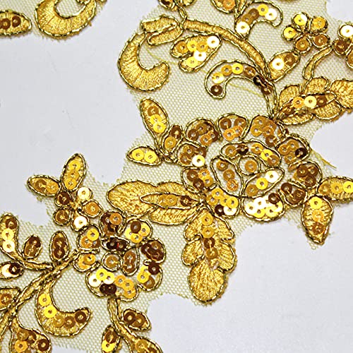 Sunmove, Toppa in tessuto con paillettes e pizzo ricamato per gonne di abiti da sposa fai da te, colore oro