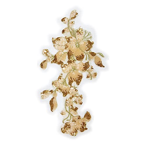 Sunmove, Toppa in tessuto con paillettes e pizzo ricamato per gonne di abiti da sposa fai da te, colore oro