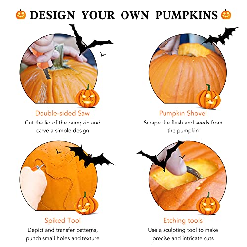 Facile da usare: intagliare le zucche è una tradizione di Halloween. Lo strumento per intaglio zucca di lunghezza perfetta è facile da tenere e afferrare. Con il nostro set da intagliare zucca è più facile e divertente. La polpa fibrosa di zucca è facilmente scavata con un cucchiaio. Decora la tua casa con le tue lanterne di zucca uniche.