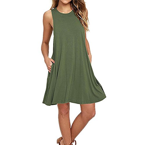 SUNNOW Abito Senza Maniche Tunica Abito Casuale delle Donne Maglietta Allentata con Tasca (S, Rinforzato Verde)