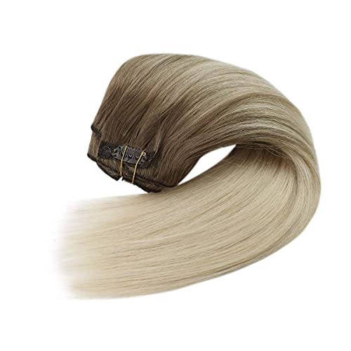 Sunny Clip in Extension Capelli Veri Double Weft Castano Chiaro #8A Balayage Biondo Platino #60 Extension Clip Capelli Veri 60cm Clip Extension Castano Remy Clip Capelli 7pcs/120g