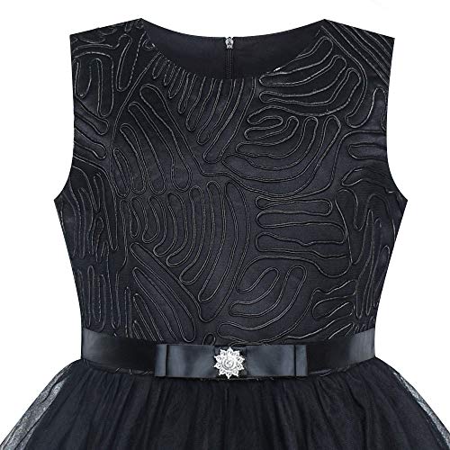 Sunny Fashion Vestito Bambina Fiore Nero Nozze Festa Damigella d'Onore 14 Anni