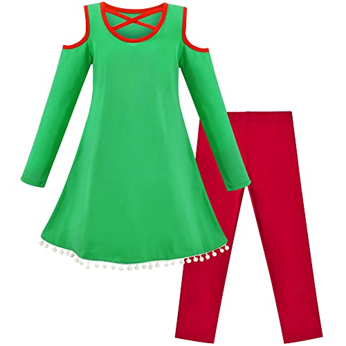 Sunny Fashion Vestito Bambina gambale Natale Set 3D Albero di Natale Manica lunga 6 anni