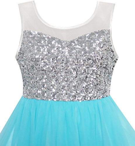 Sunny Fashion Vestito Bambina Lustrino Maglia Festa Nozze Principessa Tulle Blu 12 Anni