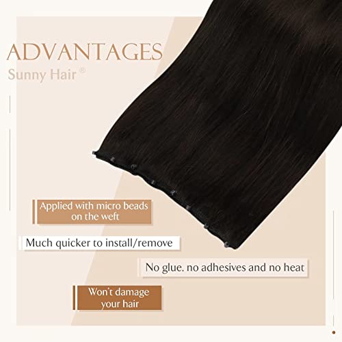 Sunny Microring Extensions Trama Dei Capelli - EZ/EZE/Easy Weft Micro Beads Extension Capelli Veri, 2#, Marrone Cioccolato, 50g,60cm