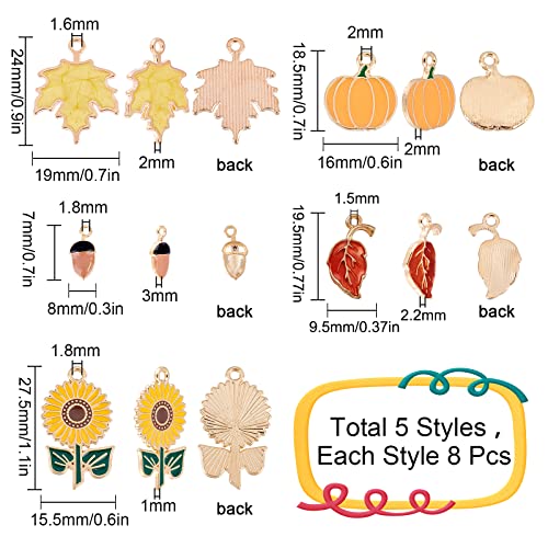 SUNNYCLUE 1Scatola 40pz 5 stili Ringraziamento Smalto Charms Caduta Smalto Fascino Halloween Della Lega Dello Smalto Autunno Zucca Foglia D'Acero Girasole Massa per La Creazione di Gioielli Charms Col