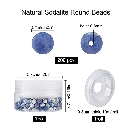SUNNYCLUE 200pcs 6mm Perline Blu Bianche Perline di Sodalite Rotonde Perline di Pietre Preziose Sciolte Filo Elastico Contenitori di Perline di Plastica per Bracciale Collana Orecchini Creazione