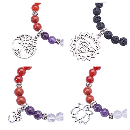 SUNNYCLUE 5 pezzi/set 7 Chakra Braccialetto stile tibetano pietra preziosa naturale perline stretch bracciali argento perline e sacchetti in velluto, Colore misto