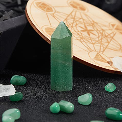 SUNNYCLUE Set di Pietre Cristalli Guarigione Naturale 18pz Pietre di Aventino Verde Pietre di Chakra Bacchette di Cristallo di Quarzo Trasparente per Guarigione e Piatto di Legno per Raccolta