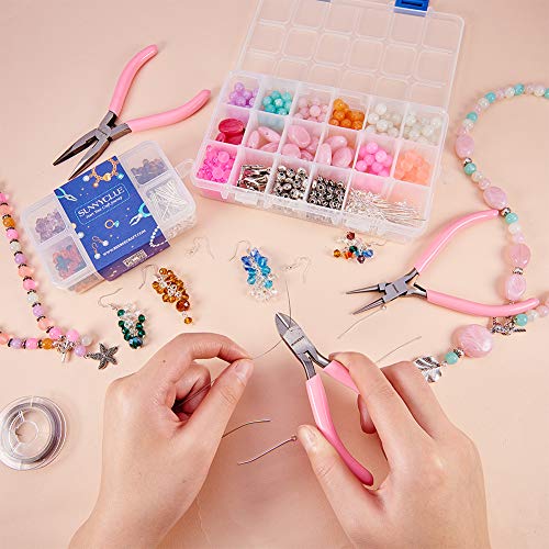 SUNNYCLUE - Set di 3 pinze Professionali di precisione per Gioielli Fai da Te, pinze a Taglio Laterale, pinze a Becco Lungo con Taglio, pinze a Becco Rotondo, Colore: Rosa