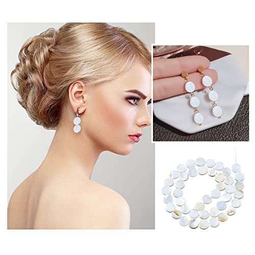 PERLINE A GUSCIO PIATTO TONDO: Perline a conchiglia dalla forma rotonda piatta e liscia, struttura del guscio d'acqua dolce combinata con il colore bianco naturale, fornito 1 rotolo di filo elastico, adatto per l'artigianato di gioielli.