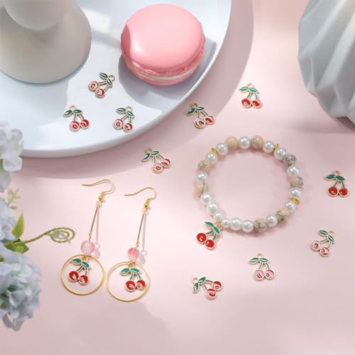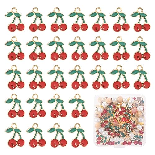 SUNNYCLUE 1 scatola 60 pezzi Ciondoli Ciliegia Rossa Ciondoli Ciliegia Frutta Sfusa Kawaii Rosso Carino Mini Smalto Lega Cartone Animato Cibo Dolce Bacche Ciondoli per Gioielli Creazione di Ciondoli O