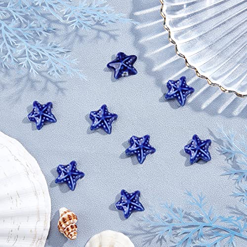 SUNNYCLUE 1 Scatola 20 Pezzi Perline di Stelle Marine Blu Perline di Stelle Marine in Porcellana Intagliate Perline Distanziatrici di Animali Oceano Charms Filo Elastico per Gioielli
