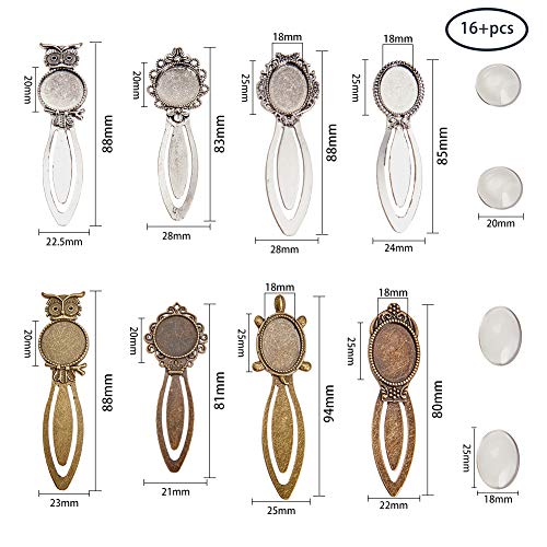 SUNNYCLUE - Set di 8 segnalibri in Vari Colori Assortiti, ovali e Rotondi, cabochon con cabochon in Vetro Trasparente a Cupola per Fai da Te, in Lega