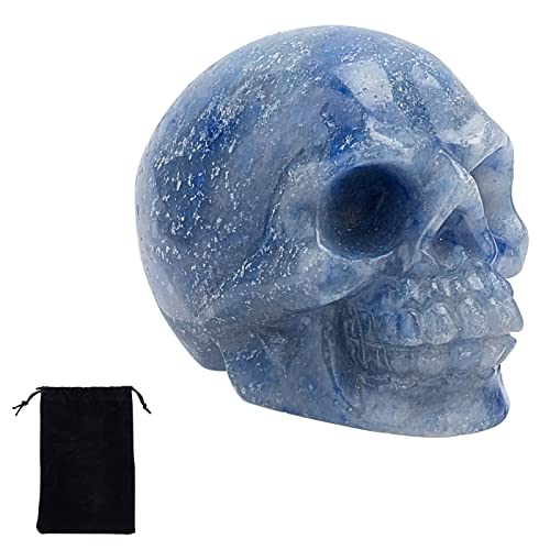 MATERIALE DI PIETRA DI BUONA QUALITÀ: le decorazioni delle statuette di teschi sono realizzate in avventurina blu naturale di alta qualità, gemme lucidate e intagliate a mano per formare una forma di teschio unica, liscio al tatto mentre è bello da vedere.