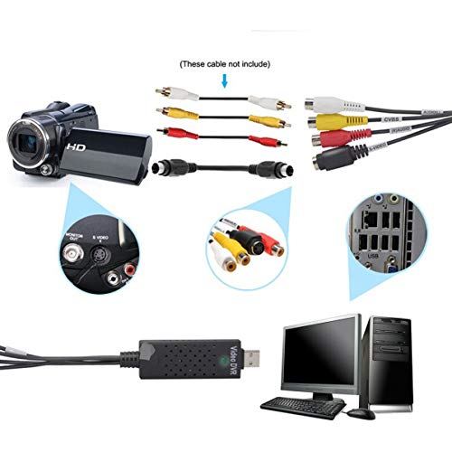 Sunnyflowk Adattatore di acquisizione Audio USB 2.0 VHS Videoregistratore Convertitore da TV a Dvd Dispositivo di Registrazione Video Digitale Grabber per PC Windows (Nero)