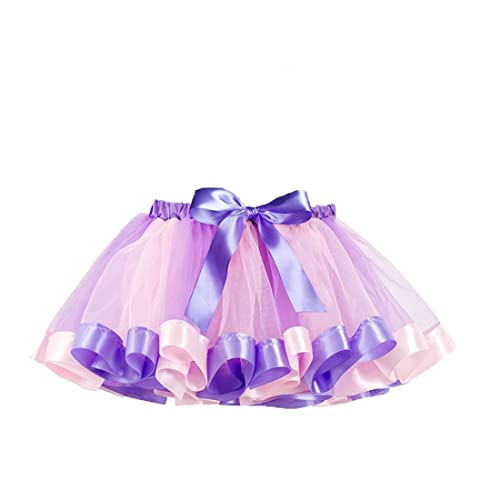 Sunowo Gonna colorata in tulle, per ragazze, arcobaleno, tutù, gonna arcobaleno, per carnevale, balletto, festa, viola, taglia L (4-6Y)