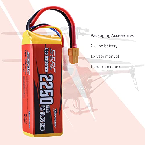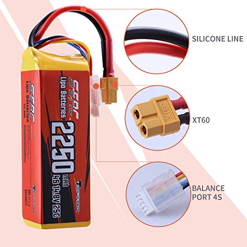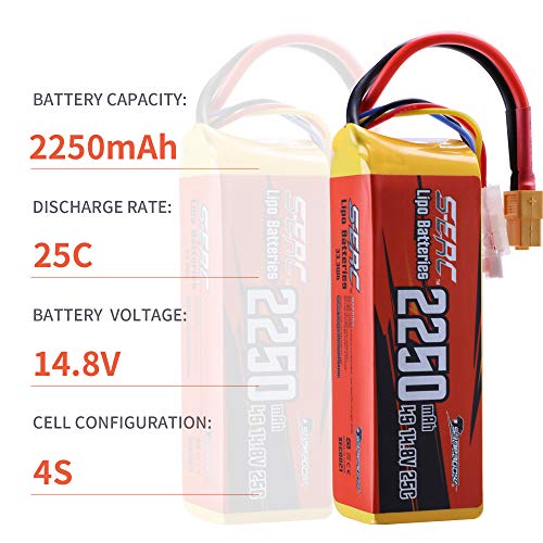 SUNPADOW 4S Lipo Battery 14.8V 25C 2250mAh with XT60 Plug for RC Airplane Quadcopter Elicottero Drone Quadcopter FPV Model Racing Hobby (2 Pack)
