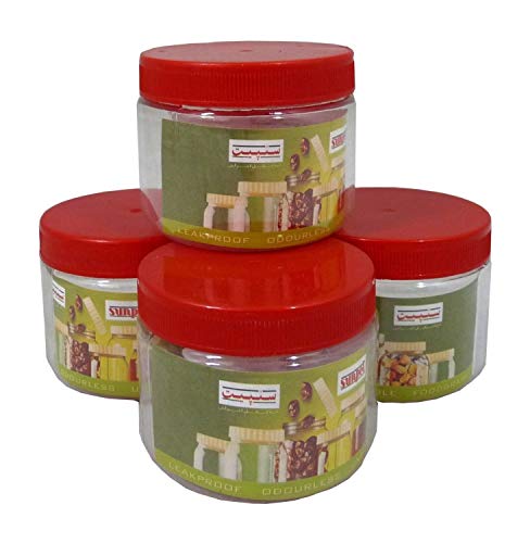 Sunpet 4 x contenitori con Coperchio a Vite in plastica Trasparente, con Coperchio Rosso - 200 ml 226,8 Grammi