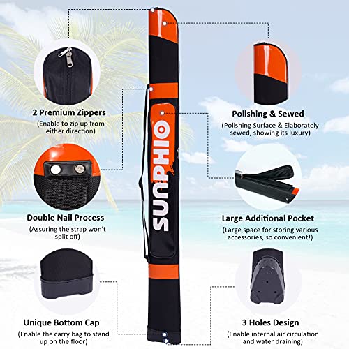 ✔ (portatile) 1 borsa per il trasporto premium e 2 ancoraggi in metallo. L'ombrellone da spiaggia Sunphio viene fornito con una grande borsa per il trasporto resistente per i viaggi. Non avrai più problemi di cintura strappati che ti rendono difficile da trasportare. Inoltre, offriamo 2 diversi ancoraggi in metallo che soddisfano le vostre esigenze in diverse occasioni, come spiaggia, erba, campeggio, picnic, pesca e campi sportivi come campi da calcio.