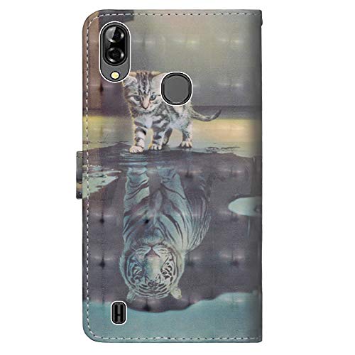 Sunrive Cover per Blackview A60 PRO (2019), Custodia con Supporto di Stand e in Pelle Artificiale per Carte di Credito Portafoglio Flip Chiusura Magnetica Protettiva Bumper(Tigre di Gatto)