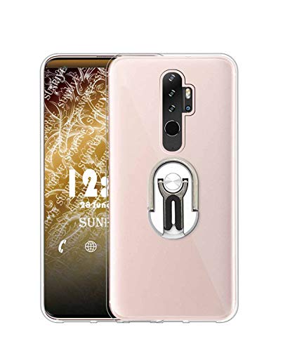Sunrive Cover per Blackview BV6300/BV 6300 PRO, Supporto Smartphone per Auto Custodia in Molle Trasparente Silicone Morbida Protector Back Case Girevole a 360 Gradi Protettiva Kickstand(Argento)