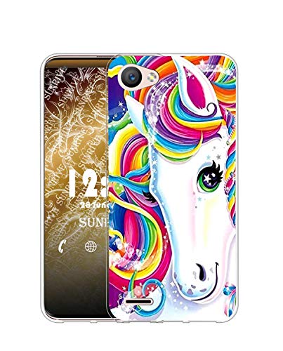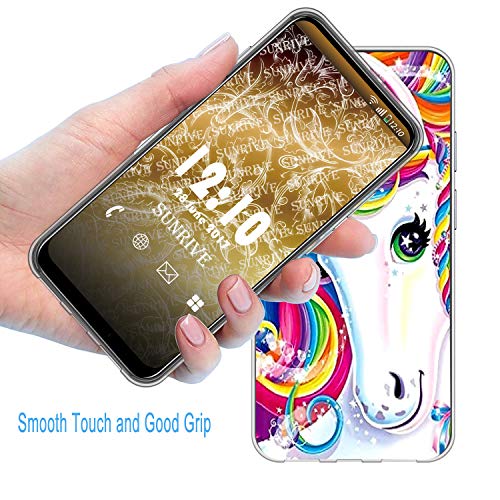 Sunrive Cover Compatibile con LG Q6, Custodia Case in Molle Trasparente Silicone Morbida Flessibile AntiGraffio Protettiva Back custodie(Q Unicorno 2)
