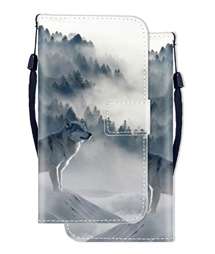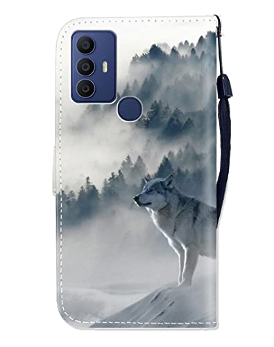 Sunrive Cover compatibile con TCL 40 SE, Custodia con supporto di stand e in Pelle artificiale per carte di credito Portafoglio Flip Chiusura Magnetica Protettiva bumper(W8 Lupo)