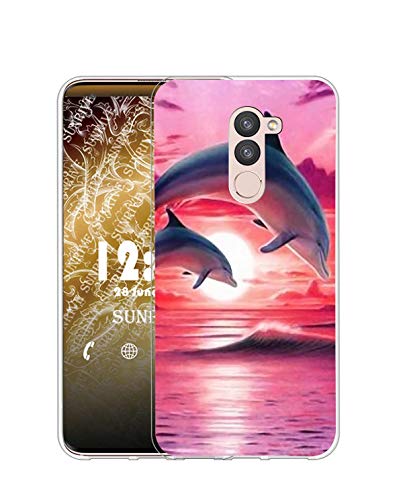 Sunrive Cover compatibile con Honor 6X, Custodia Case in molle Trasparente silicone Morbida Flessibile Antigraffio protettiva back custodie(Q delfino)