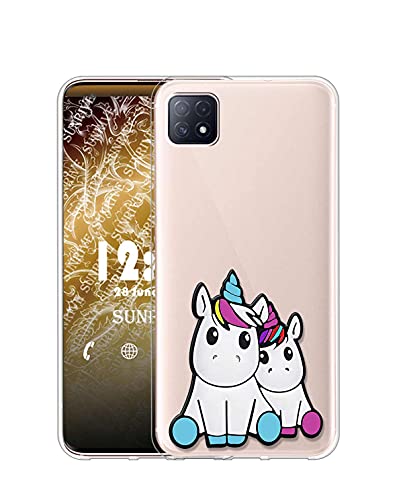 Sunrive Cover Compatibile con Oppo A73 5G, Custodia 3D Case in Molle Trasparente Silicone Morbida Flessibile AntiGraffio Protettiva Back custodie(W1 Unicorno 2)