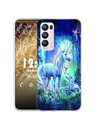 Sunrive Cover compatibile con OPPO Find X3 Neo 5G, Custodia Case in molle Trasparente silicone Morbida Flessibile Antigraffio protettiva back custodie(Q Unicorno 3)