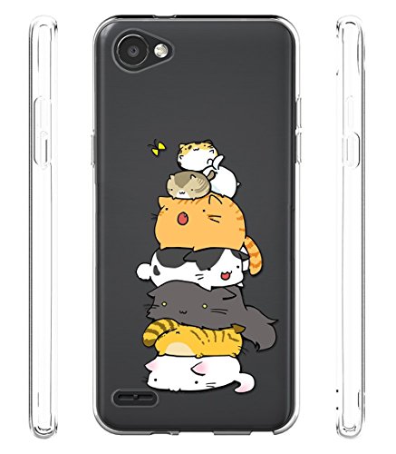 Sunrive Cover per LG Q6, Custodia Case in Molle Trasparente TPU Silicone Morbida Flessibile Pelle AntiGraffio Protettiva(TPU Gatto 2)