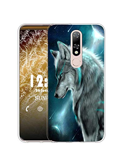 Sunrive Cover Per Meizu M8 Lite, Custodia Case in molle Trasparente silicone Morbida Flessibile Antigraffio protettiva back custodie(tpu Lupo)