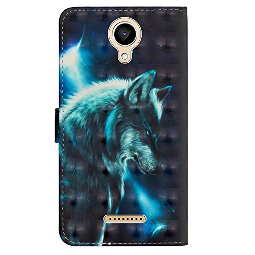 Sunrive Cover per Wiko Harry, Custodia con Supporto di Stand e in Pelle Artificiale per Carte di Credito Portafoglio Flip Chiusura Magnetica Protettiva Bumper(Lupo)