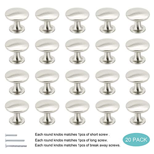 Sunriver Pomelli per cassetti, credenze e armadietti di cucina e bagno, in nichel spazzolato, 29 mm, colore argento, confezione da 20 pezzi