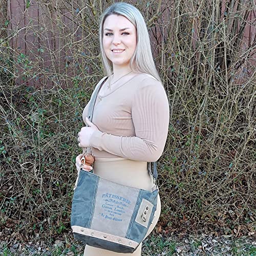 Sunsa 52215 - Borsa a tracolla da donna, in tela, con pelle, grande vintage, idea regalo per donne e ragazze, prodotti sostenibili