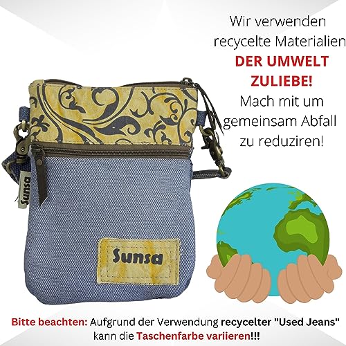 Sunsa - Borsa a tracolla da donna Piccola borsa in tela e jeans riciclati. Borsa ecologica. Borsa a tracolla adatta per donne e ragazze., giallo/blu, 24x18 cm, Rétro