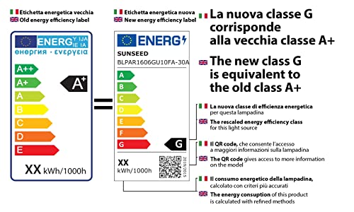 Classe di efficienza energetica G. Consente un risparmio di energia elettrica superiore al 90%.