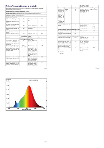 Classe di efficienza energetica E. Consente un risparmio di energia elettrica superiore al 90%. Ampia diffusione della luce (300°). No mercurio e zero radiazioni UV