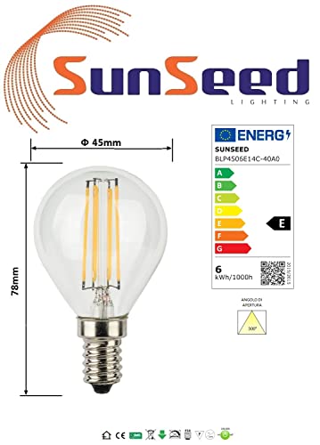 SunSeed 10x Lampadina E14 Filamento LED 6W Sfera G45 806 Lm Luce Naturale 4000K