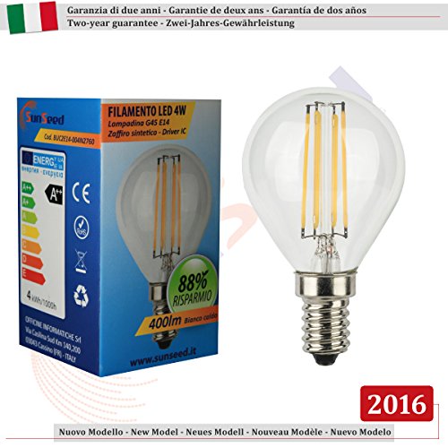 SunSeed 3x Lampadina E14 Filamento LED 4W Sfera G45 400 Lumen Luce Calda 2700K