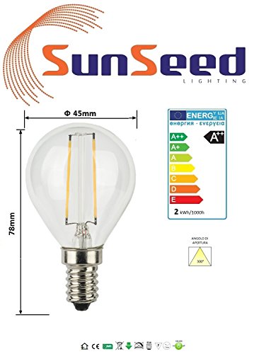 SunSeed 6x Lampadina E14 Filamento LED 2W Sfera G45 250 Lumen Luce Calda 2700K