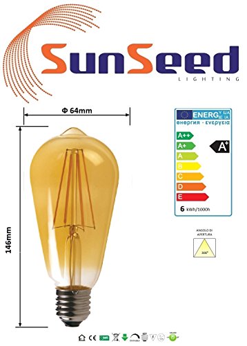 SunSeed 4x Lampadina E27 Filamento LED 6W ST64 530lm Extra Calda 2200K Dimmer.