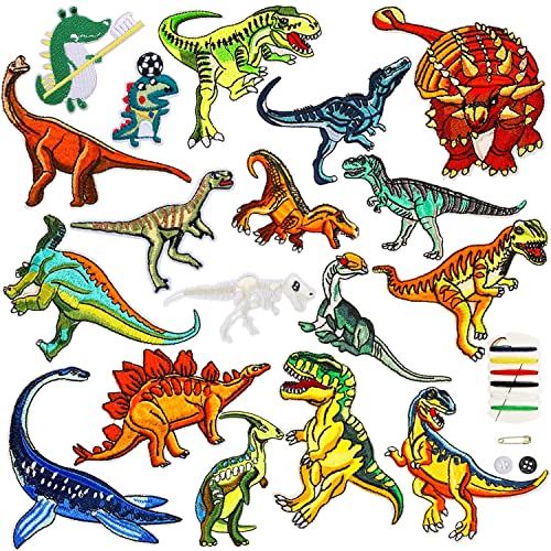 Sunshine-Smile 18 PCS Applique Patches Kit, Dinosauro Toppe,Toppe termoadesive,applicazioni termoadesive Toppe Vita camion,Fai da Te Patch Toppe,Toppe per Vestiti Toppa Ricamata,per Giubbotti, Jeans